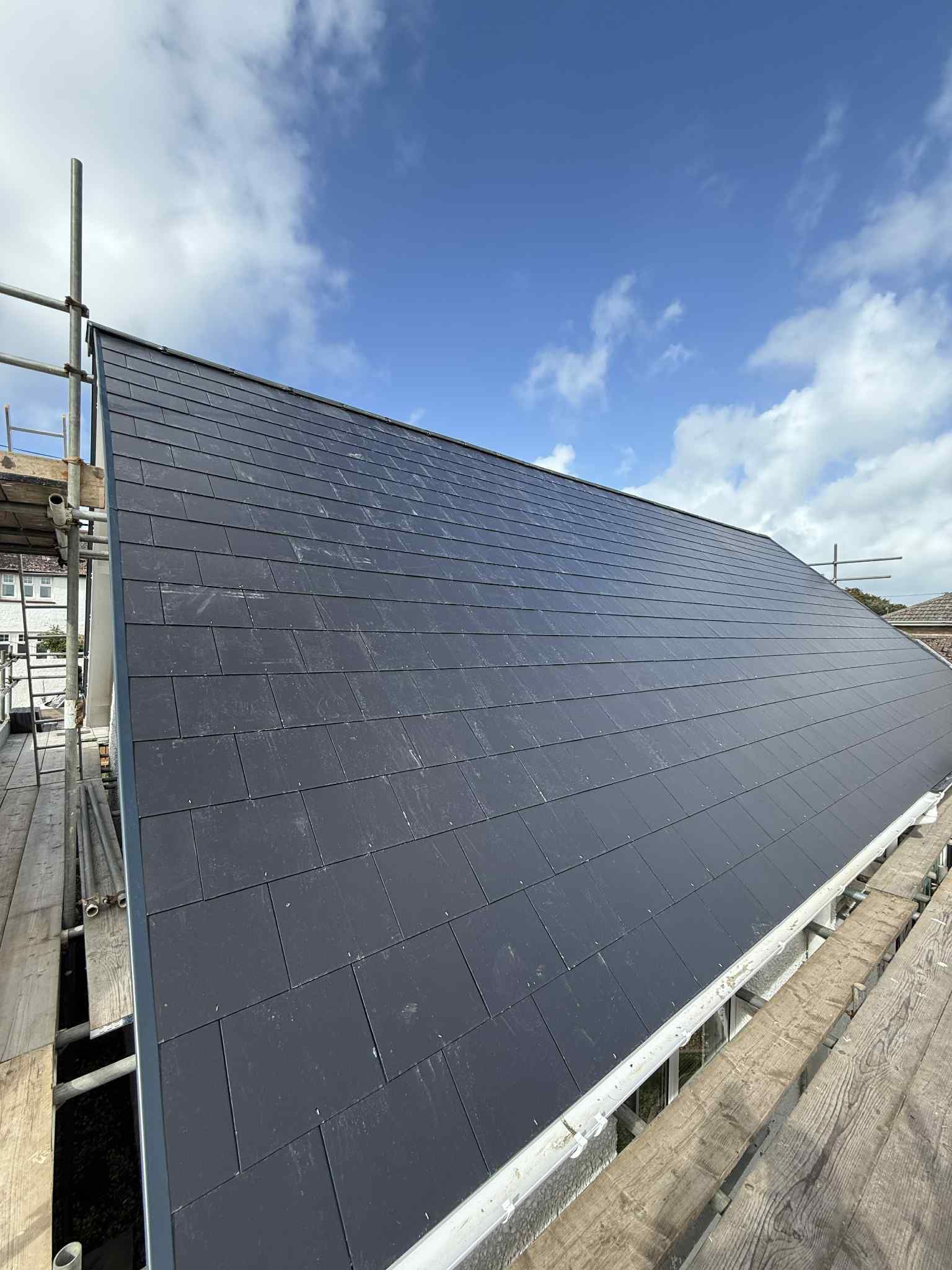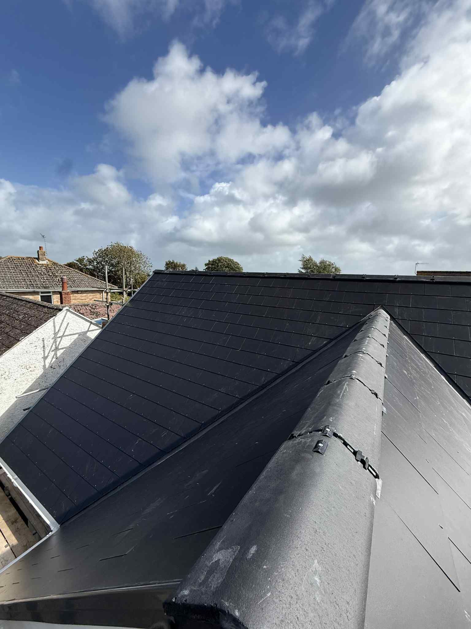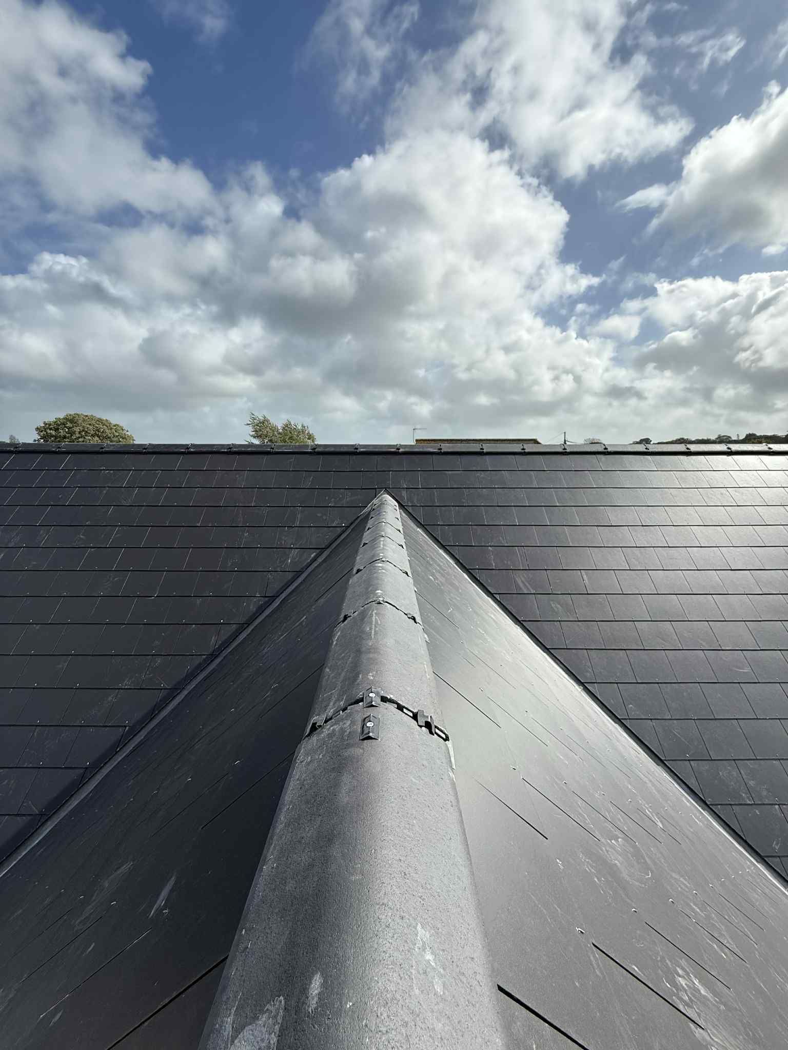 - ✅ New cement fibre slates with matching ridge tiles