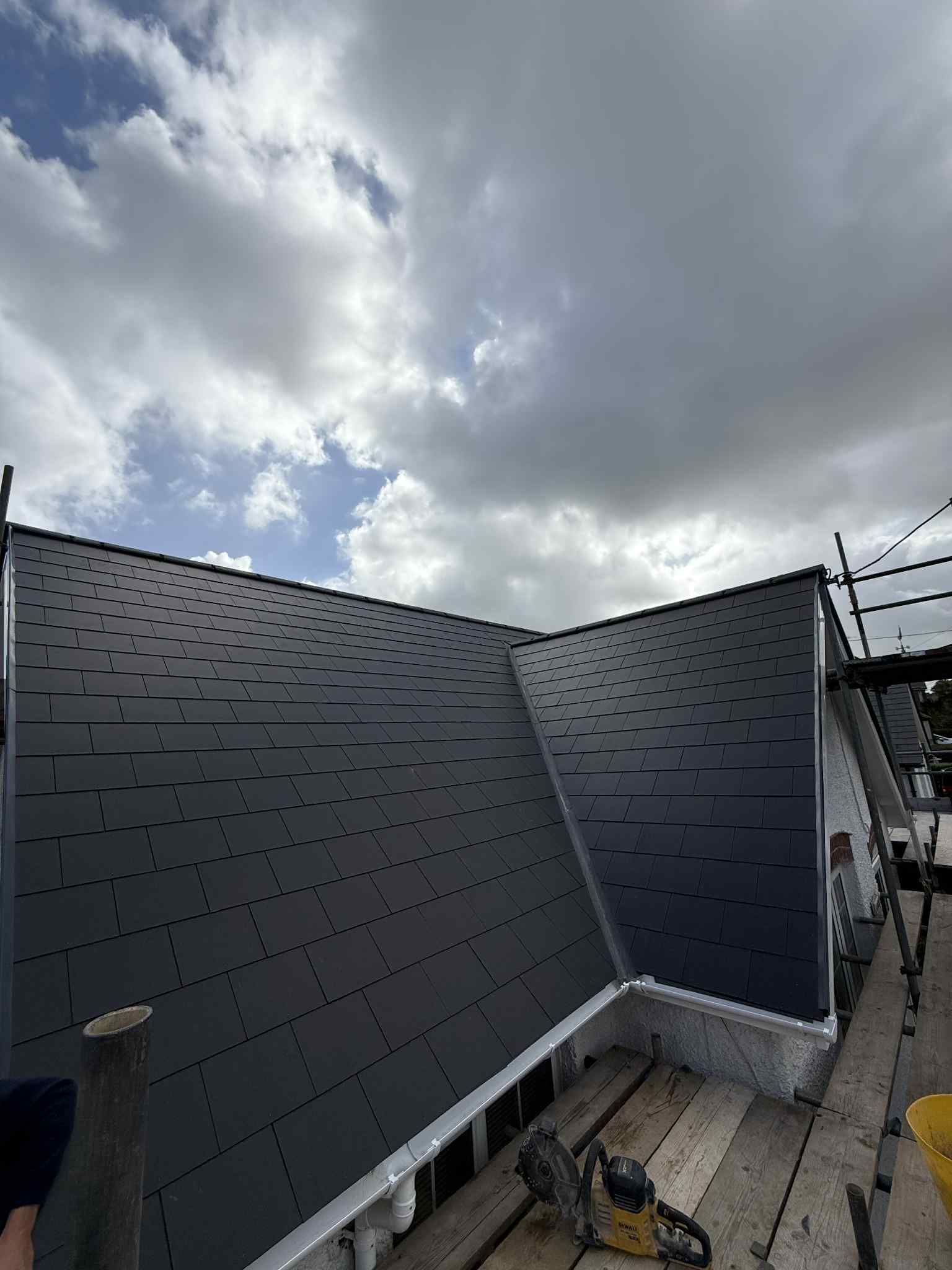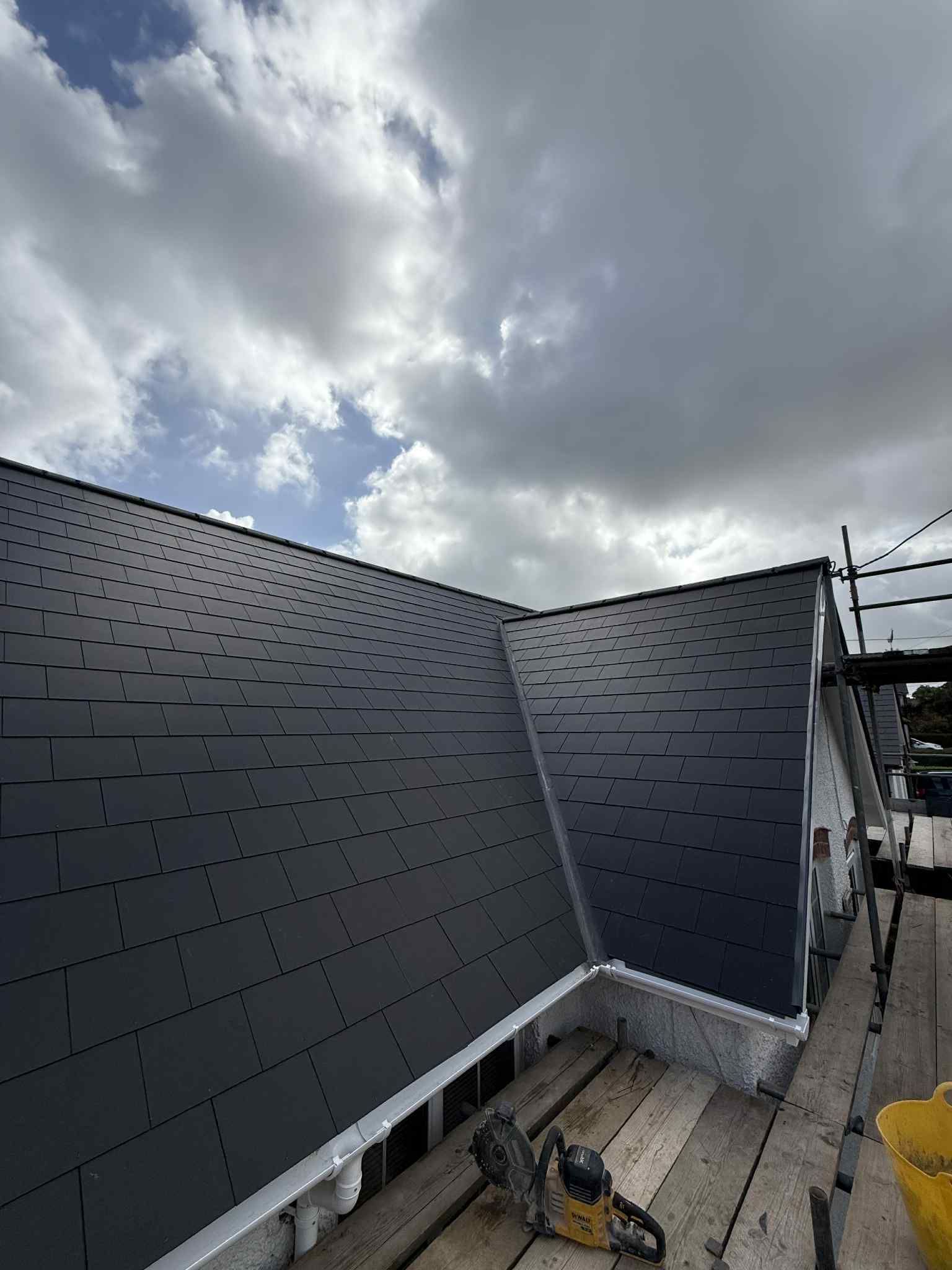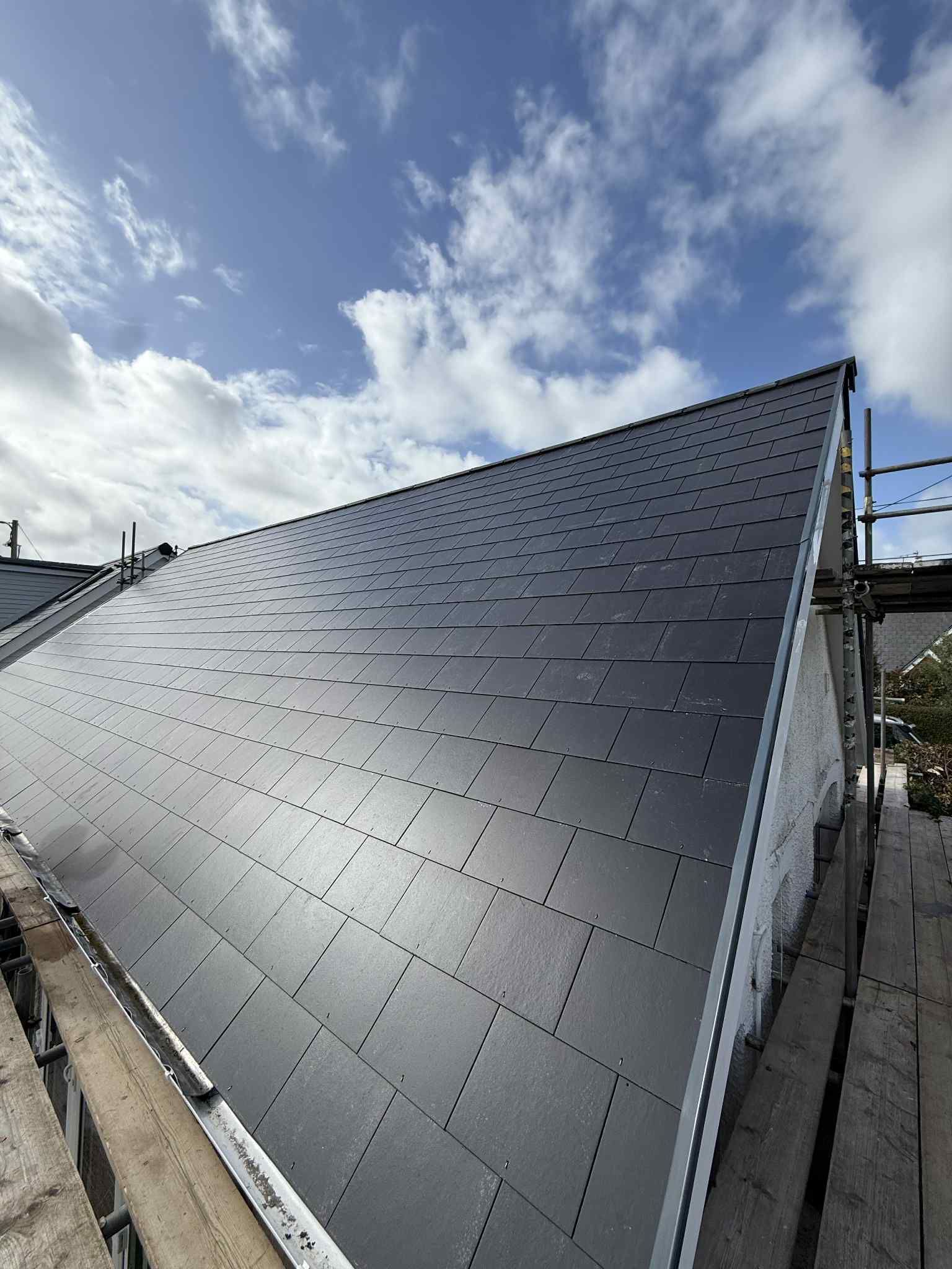 - ✅ New cement fibre slates with matching ridge tiles