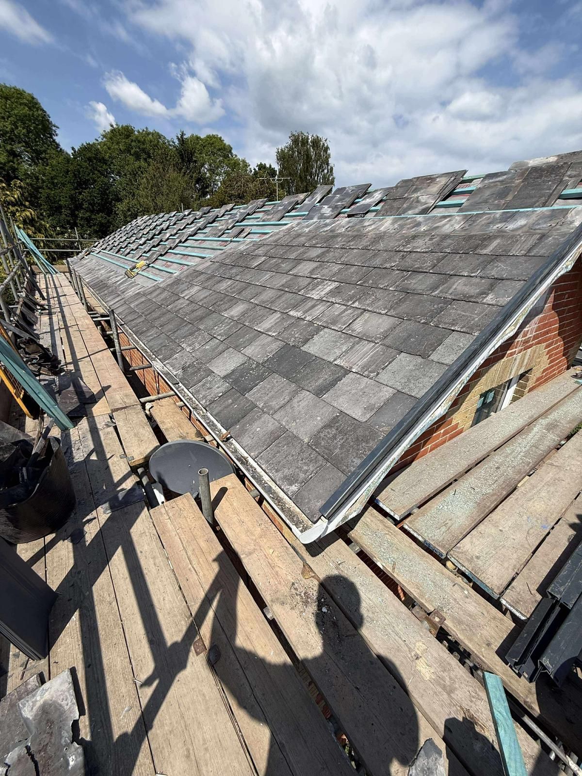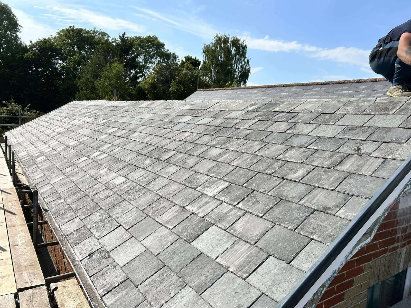 - Full re-roof completed in Wootton using reclaimed Welsh slate